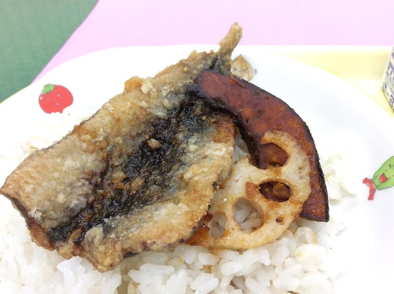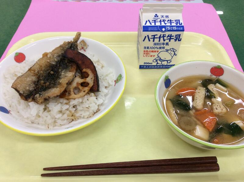 さつまいもごはん、サンマの塩焼き、根菜汁、牛乳 です!