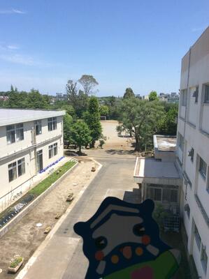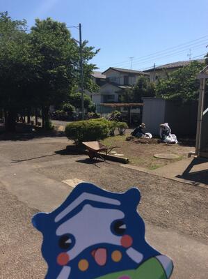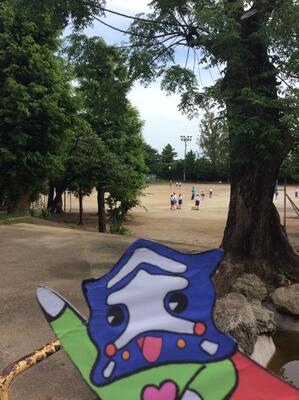 校庭の水たまりも用務員さんが排水溝を掃除してくれて