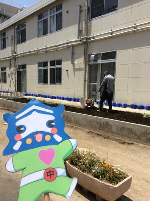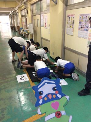 2日かけて市内の用務員さんが中国分小の廊下の壁を