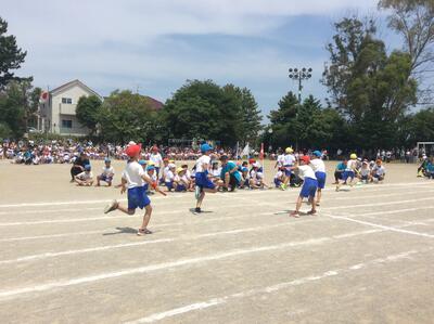 写真は低学年リレー(1、2、3年生)の選手が集まった様子です。