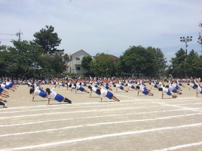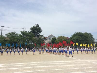 運動会練習、水分補給や休息を入れ、練習時間を短くしたり
