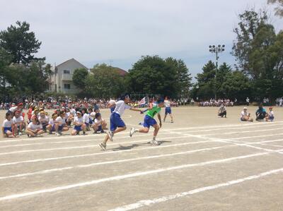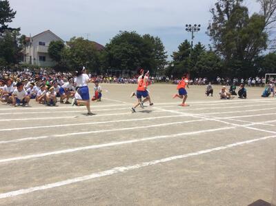 校庭では5年生が短距離と走り幅跳びの授業を行っていました。