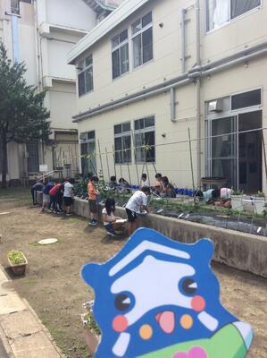 2年生は野菜の観察、3年生は、ほうせんかの種まきです。