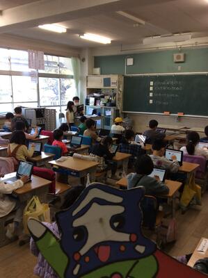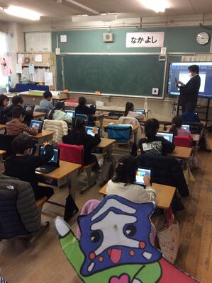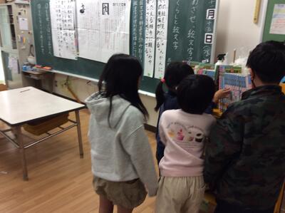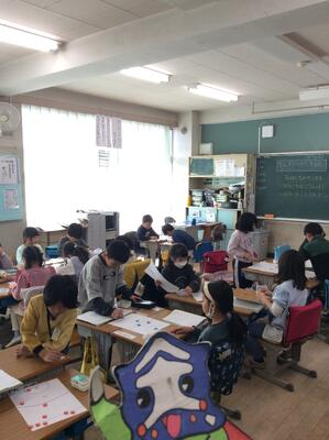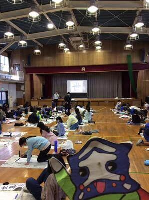 今日は3、5年生 明日は4、6年生が書初めをおこないます。