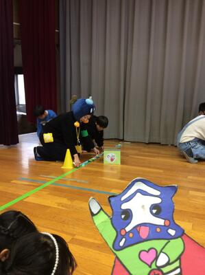 体育館では2年生が跳び箱を使って様々な運動を楽しんでいました。