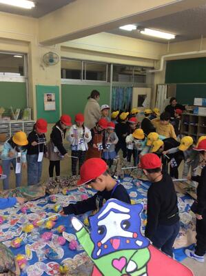 1年生がおはじきゲームを楽しみながら足し算の力を身につけています。