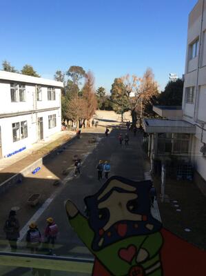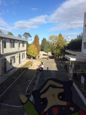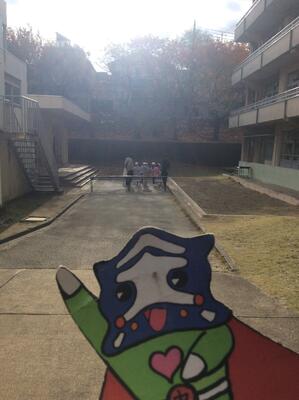 校庭では2年生が鉄棒の練習をしていました。がんばれ。