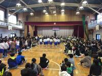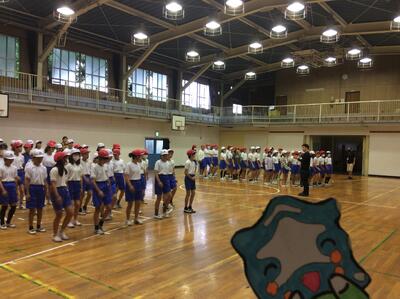 体育館では5年生が集まり、11日の校外学習の説明会を