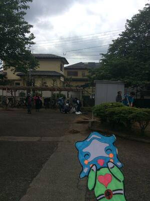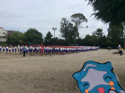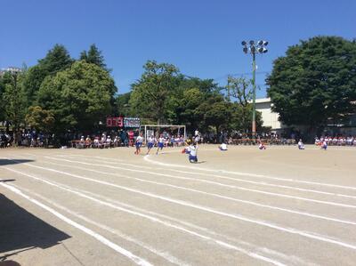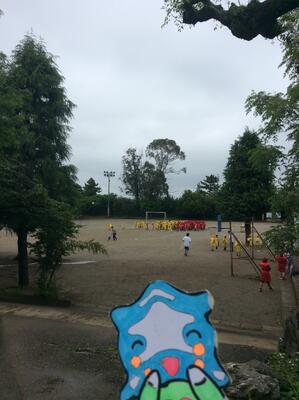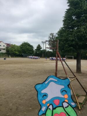 きれいです。校庭では50メートル走の記録をとっていました。