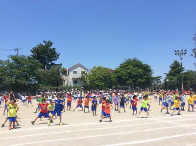 晴天の中、保護者、地域の方の協力をいただき運動会を行うことが