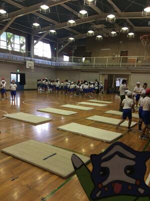 体育館でスポーツテストです。
