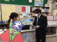 雪が残る足元の悪い中、一中の生徒会の皆さんが来校しました。
