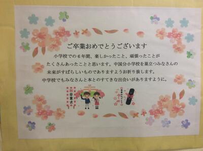 卒業式が終わり、六年生が中国分小学校を巣立っていきました。