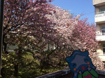 3枚目は校庭の八重桜の様子です。とてもきれいです。