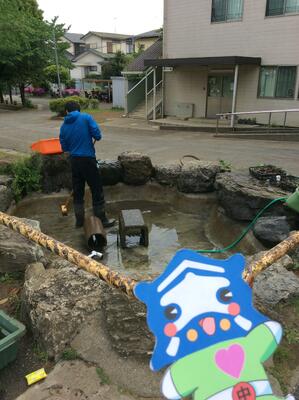 6年生がプールの4つ角に塩とお酒をまき安全祈願をしました。