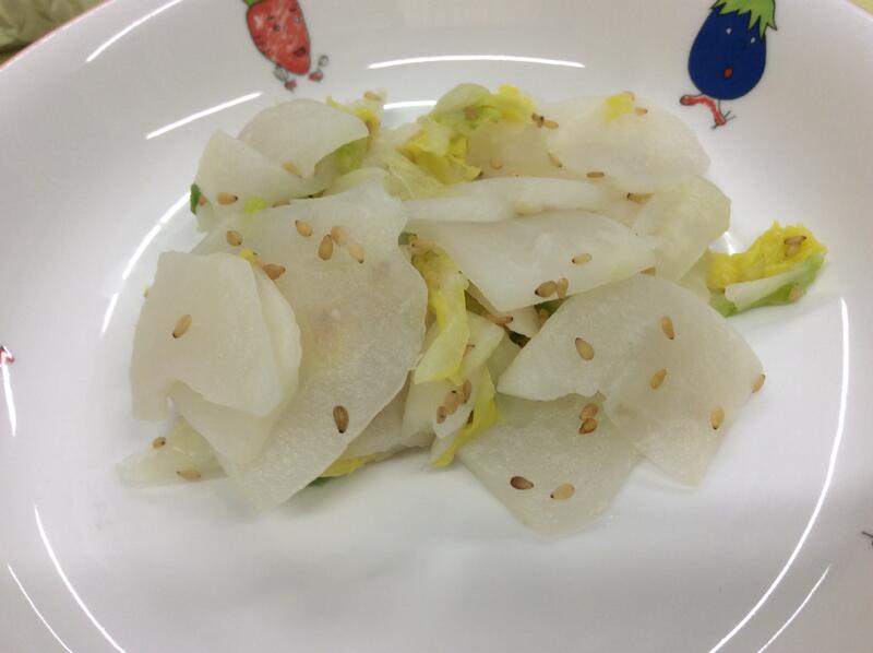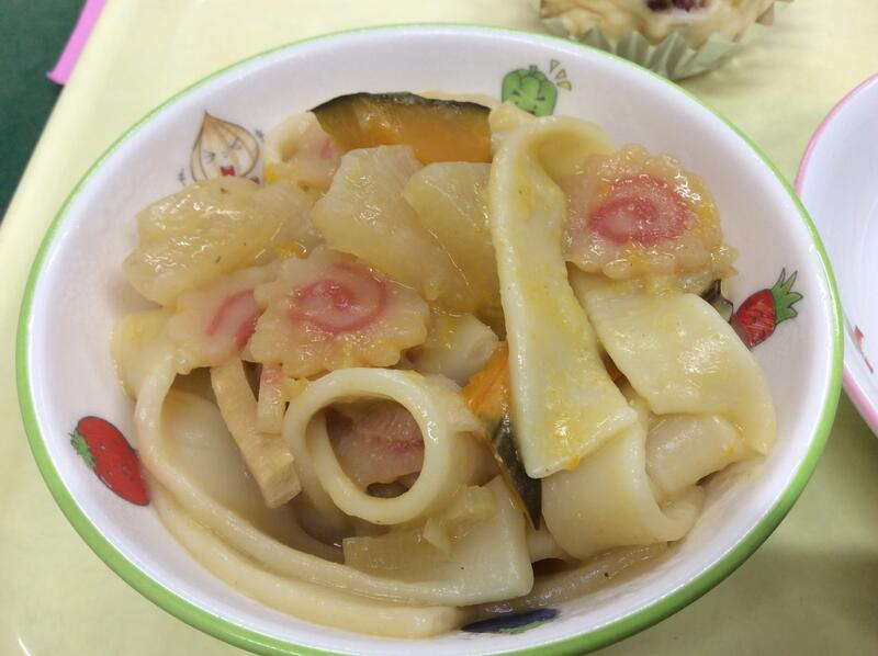 ほうとううどん、カブの甘酢づけ、小豆チーズ蒸しパン、牛乳 です!