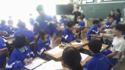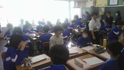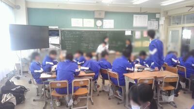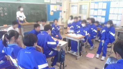 本日、学区の小学校の先生に来ていただき開催しました。講師には教育委員会の先生をお招きして授業改善に向けて指導していただきました。生徒たちも一生懸命に授業を受けており、お褒めの言葉をいただきました。