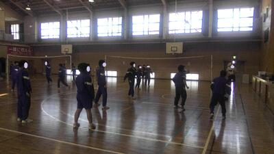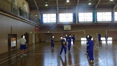 2年生体育はバレーボールの授業で試合をしていました。三段攻撃に挑戦していました。みんなしっかりラリーが続いて熱戦が展開されていました。