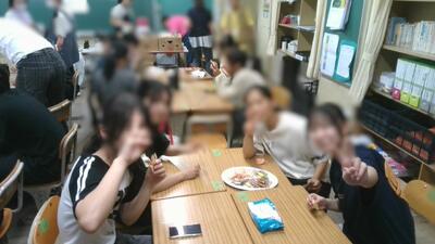 夜の自由時間の様子です。みんなそれぞれ部屋や共有スペースで楽しんでいます。