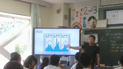 今日の英語は「田村さんの思いや工夫を読み取ろう」という事で学習しました。グループに分かれて①本文を訳す、②どんな文法が使われているか確認?③単語の意味や読み方を確認、以上の役割に分かれて役割の内容を各自で取り組むました。その後、役割ごとに班のメンバーに自分が取り組んだ内容を伝えました。その後、ALTの先生が正読して正しい発音等を確認しました。協働的な学びに取り組んでいます。