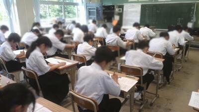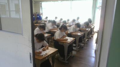 1年生にとっては初めての定期試験となりました。今日の試験科目は理科・英語・国語です。みんな真剣に取り組んでいました。試験は点数も大切ですが、今まで授業への取り組んできたことの確認です。今後どう結果を自分に戻して生かすかが大事です。