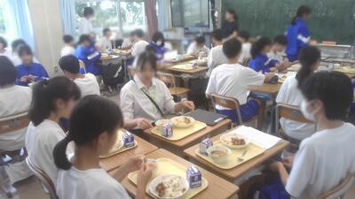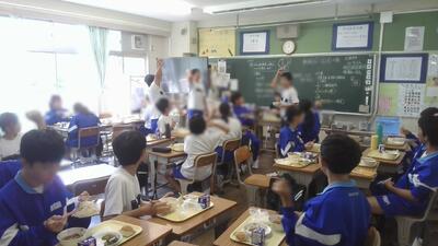 本日は、めあて「でんぷんに対する唾液の働きを学ぼう」ということで取り組みました。大型提示装置に胃のレントゲン動画を映し出して動画を見ながら働きを確認しました。アミラーゼ等について学びました。