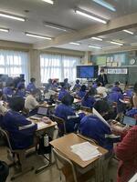 本日、榎学級の英語の授業を他市の特別支援学級の先生が来校して参観しました。授業終了後、教育委員会の先生に授業について指導していただきました。その後、参加した先生方が「特別支援学級の担任として」ということで研修をしました。生徒たちは一生懸命取り組んでいました。