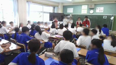 今日は3年生で、5、6校時に進路講演会を実施しました。近隣の公立高校や私立高校の先生に来ていただき、教室でお話いただきました。他のクラスや保護者の方の別室にも、同時にリモートで配信しました。高校の紹介だけでなく、受験に向けての心構えや夏休みにしておくべきことなどを丁寧に説明していただきました。