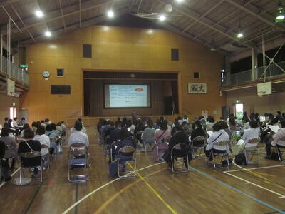 本日、歯科学校医の先生を講師にお招きして講演会を開催しました。はじめに健康の要素「食事・睡眠・運動」について教えていただきました。その後、口の骨の仕組み、歯のぞれぞれに役割、そして食事は目で見るだけではなく五感で感じられるから楽しいということを紹介してくれました。また唾液の役割や歯ブラシの仕方について、歯と歯の間の汚れを取るためには通常の歯ブラシでは届かいないためフロス(糸歯ブラシ)を使うと良いという事、健康に生活するためには歯が大切だということを教えていただきました。先生本日はお忙しい中ありがとうございました。