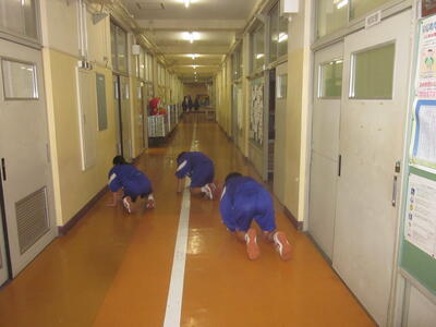 今日は掃除の様子を紹介します。原則月・火・木曜日、給食後15分間みんな体操服やジャージ姿でやっています。時間いっぱいきれいにしようと心を込めて掃きや雑巾がけに取り組んでいます。