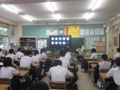 2学期から職員室に大型提示装置が設置されました。先生方の情報共有のために活躍してくれています。