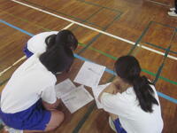 今日5・6時間目、全校生徒各学年が均等になるように分かれて班を作り全校道徳を行いました。初めて顔を合わせる異学年との交流だったのでアイスブレイクをして和んだ雰囲気を作った後、本題に入りました。初めに各自で校則がなぜ必要が考えワークシートに自分の意見を書きだしました。その後、班で共有、最後に学級全体で共有して考えを広げました。「なぜ校則が必要なのか」という問いにはルールがないと学校全体がまとまらないから、不要物が持ち込まれると授業妨害につながるから等の意見が出されました。次に体操服のシャツ出しのメリット、デメリットをみんなで考えました。メリットとして体感温度が下げられる。デメリットはだらしない等の意見が出されました。また地域や保護者、先生がどう思うかを考えました。感じが悪い。だらしない等の意見が出されました。他学年と交流することで自分にはない意見を聞いて考える視点を各自が持てました。