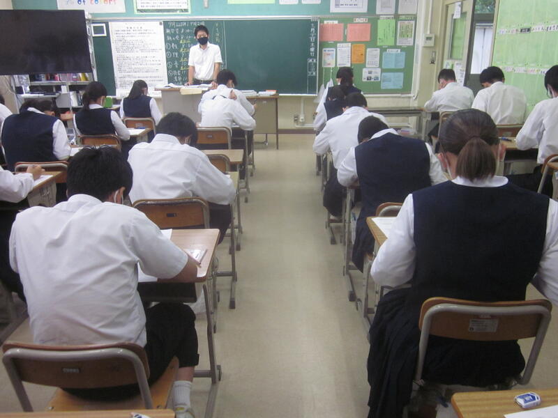 本日は1・2年生定期テストⅢです。国語、社会、英語に取り組んでいます。みんな真剣に試験に臨んでいます。勉強した成果が出せるといいですね。テストが終わって結果が出たら日頃の授業の取り組みについても振り返ってほしいです。