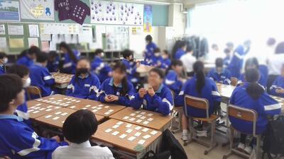 1時間目の国語の授業で百人一首をしていました。日本の伝統に触れる大切な体験です。みんな必死に札を取ろうと熱気に包まれていました。