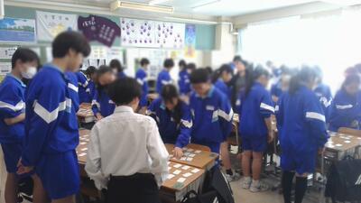 院内学級の情緒専門の先生が授業者となり2年生学年道徳を行いました、今日のねらいは人それぞれの「ふつう」があることを知る。障害とは、困難さのある人にとって社会制度などが障壁になってしまうことを知るという事でした。初めにアイスブレイクとしてバースデーラインを行い、その並びで班を作りました。その後「ふつうって何だろう」について動画を見て班に分かれて意見をまとめました。最後に見た目で分かりにくい困難さがある人に必要なことを考えました。生徒にとっても教職員にとっても大変貴重な時間となりました。