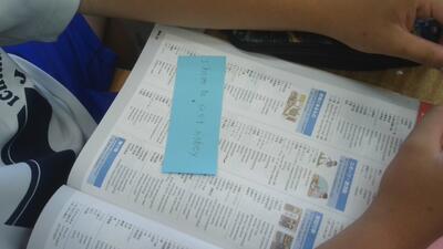 2年生の国語で平家物語の朗読劇に向けた練習が行われていました。目的は古文に親しむこと。セリフを読み込んで心情や場面を理解することです。みんなセリフに蛍光ペンでラインを引いて練習をしていました。本番が楽しみです。