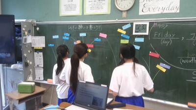 はじめに倒れている人を助けるという課題を英語を使って各班ごとにみんなの前で実演しました。その後本題の日本の漫画が世界で人気がある理由について、教科書の英文から読み取りました。