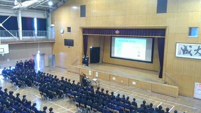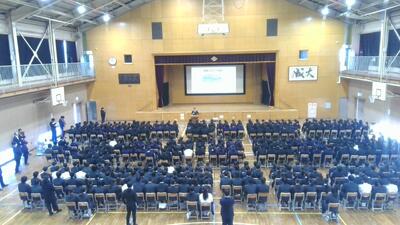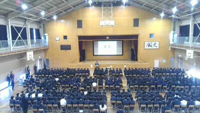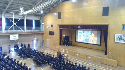 2学期に締め括りとして1時間目3年生が体育館で学年集会を行いました。卒業式までこれから時間を守ること、言葉遣い等改めて確認しました。その後、県立高等学校のインターネット出願等について話がありました。3年生はこれから健康管理が一番です。上手に時間配分しながら各自の目標に向かってください。本日はこの後、他の学年も学年集会で2学期の振り返りをします。