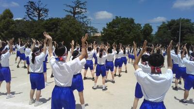 今日は掃除の様子を紹介します。原則月・火・木曜日、給食後15分間みんな体操服やジャージ姿でやっています。時間いっぱいきれいにしようと心を込めて掃きや雑巾がけに取り組んでいます。