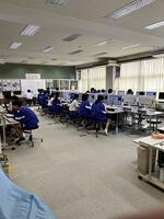 3棟2階にはコンピューター室があります。学校にコンピューターが導入され、各校でコンピューター室が整備され始めたのはもう30年も前のことですが、当時はワープロソフトやインターネットの使用(使い方を知る程度)が主な用途でした。今ではインターネットを利用した調べ学習はもちろん、プレゼンテーションの作成や、プログラミング学習などに利用されています。インターネットはスマホでも見られ、皆さんも普段から使い慣れていると思いますが、例えば、プレゼンテーションはこれからの社会ではとても大事な力の一つとなっています。また、プログラムはそれを作成する力も大事ですが、プログラムを作成するために必要な思考(プログラミング的思考)を育てることがとても重要であるとされています。自分の思うとおりに動かすために、どういう命令をどういう手順で示したらよいか、ループや判断をどの場面で取り入れるか、など、考え出すと面白いものです。インターネットの利用だけにとどまらない、コンピューターの活用についてしっかりと学んでみてください。