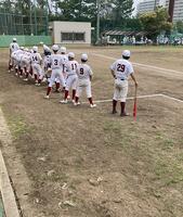 6日(土)は野球部の応援に行ってきました。写真は試合前のシートノックに行く前の様子です。ユニホームが揃うと格好いいですね。試合のほうは最後までよく粘ったのですが、サヨナラで敗れてしまいました。3年生が少ない中、野球部の皆さん熱い試合を見せていただきありがとうございました。