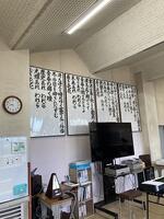 写真は音楽室の前にある校歌の歌詞です。見やすくてとってもいいですね。誰が書いたんでしょう。
