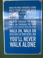 1年生の廊下掲示物「大切な詞」の中にありました。どんな意味なんだろう?とALTに聞いてみたら、歌の歌詞なんだそうです。1945年のミュージカルの劇中歌で、サッカークラブリヴァプールFCのサポーターソングとして歌い継がれているようです。「歩いて行こう 希望を胸に 君は決して一人じゃない」とても力強いメッセージですね。