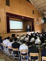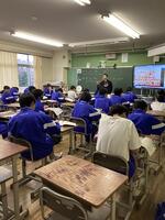 今日の5時間目、1年生は保健講演会として、歯科医師の方を講師に招き、「口と歯の健康」についての講演会を実施しました。虫歯だけでなく、日ごろの生活習慣からくる様々な口と歯の健康について、専門的見地からわかりやすく説明していただきました。