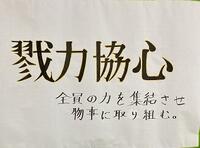 3年生修学旅行のスローガンです。恥ずかしながら読み方がわかりませんでしたが、調べてみると、「りくりょくきょうしん」と読むようです。四字熟語で意味を調べてみたら、「全員の力を結集し、一致協力して任務に当たること。」とのこと(下に書いてありましたね)です。修学旅行は個人の旅行ではないので、一人のわがままは全体の行動に影響します。スローガンに負けない3年生の協力体制と行動力に期待します。