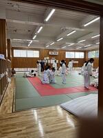 柔道の授業が面白いです。写真は1年生ですが、1年生は安全のため?か、膝をついた状態での組合となっています。互いに背中を合わせた状態からスタートするのですが、一生懸命相手を倒そうと引っ張ったり、押したりする様子がとても楽しそうで、ほのぼのした感じが伝わってきます。とってもいいですね。