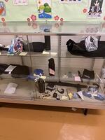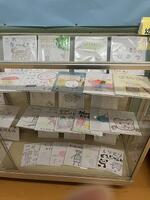 家庭科室の前の廊下に、3年生が授業で作成した「幼児のための絵本」が展示されています。どんな内容なのか、とっても気になります。中にはきっとものすごい傑作があったりするのでは…。大切な作品なのでみんなが手に取って見られないのがとても残念な感じです。我こそは!と自信のある人は、ぜひ自慢しに来てくださいね。待ってます!ついでと言ってはなんですが、素晴らしい作品の並んだショーケースの横には、忘れ物、落とし物のショーケースがあります。こちらは何にもなくて寂しいほうがいいですが。