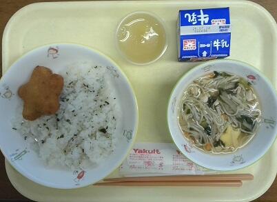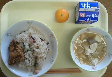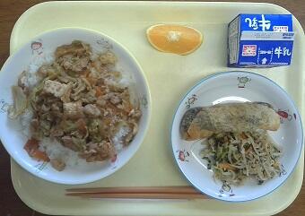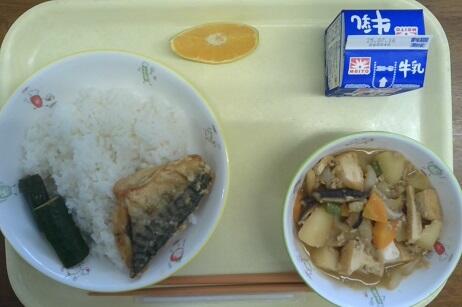 本日の給食は、ご飯・ぶり大根・味噌汁・納豆和え・果物(みかん)でした。ぶり大根は煮汁が大根に染み込み、大根の程よい甘さと、ぶりの柔らかさでご飯がすすみます。納豆和えもご飯にぴったりでした。