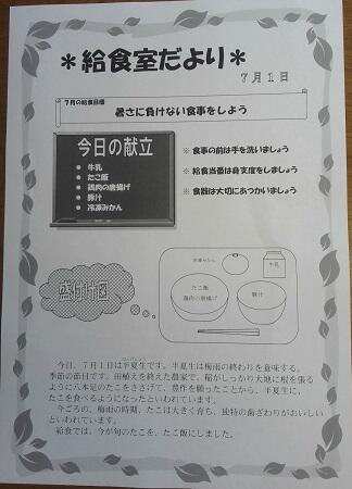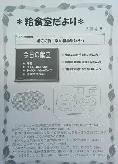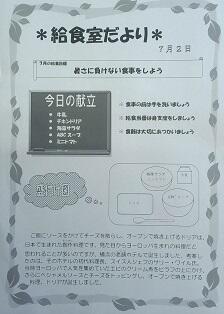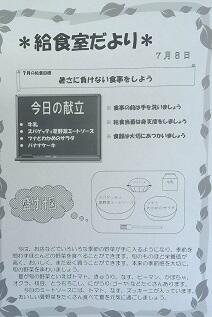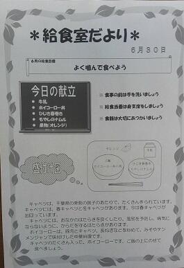 栄養教諭の先生をはじめ給食室で働いている方々は、生徒の皆さんに安全で栄養のある給食を毎日届けてくれています。人には好き嫌いがあって、苦手な給食が出ることもあると思います。ただ、給食に携わってくれている方々(農家の方や給食の食材を運んでくれる方、調理してくれる方々など)の気持ちだけは忘れないでほしいと思います。皆さん、ありがとうございました。