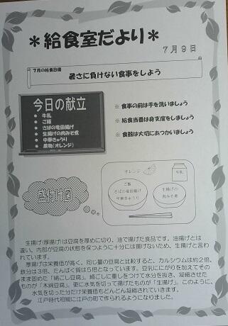 本日は、ご飯・すき焼き風煮・ごま酢和え・青のりポークビーンズでした。すき焼き風煮の少し甘めの味付けは、生徒たちの喜びそうな味に仕上がっています。青のりポークビーンズもポテトチップスのような生徒たちが食べやすい味でした。
